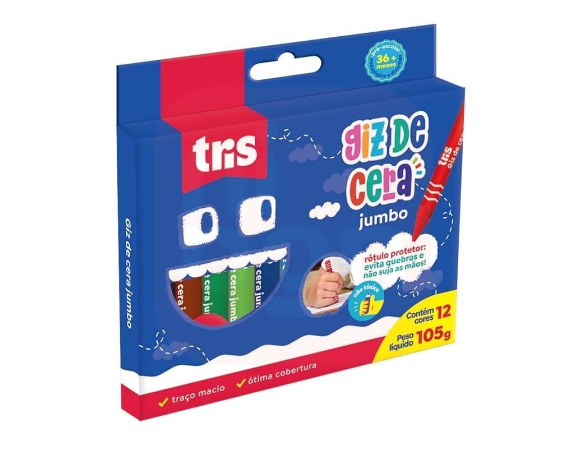 Giz de Cera Jumbo Tris 12 Cores - Tris