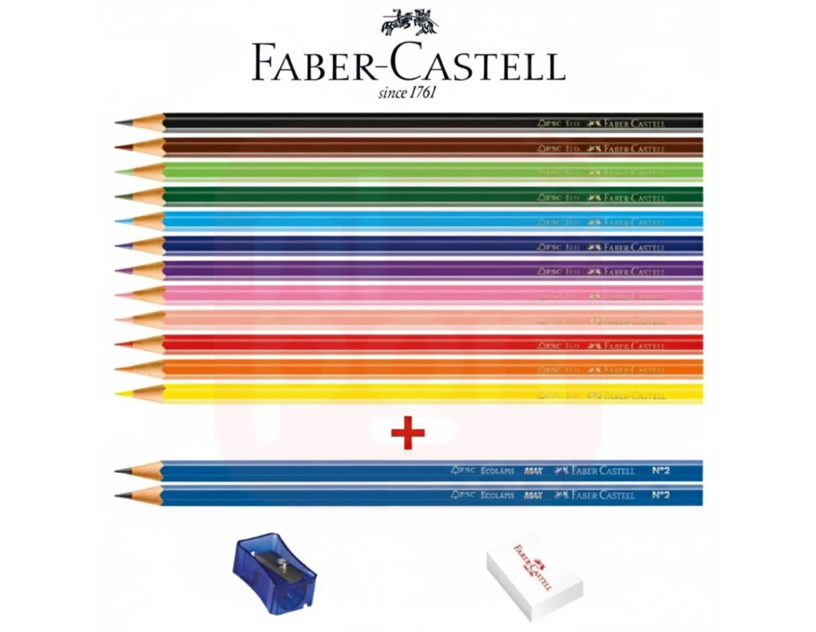 O Lápis de Cor 12 Cores com Borracha e Apontador Faber-Castell é a solução prática e completa para o dia a dia escolar ou artístico. Com 12 cores vivas e intensas, este kit oferece tudo o que os estudantes precisam: lápis de qualidade superior, uma borracha macia e um apontador eficiente, tudo da marca que é referência em materiais escolares. Os lápis possuem corpo sextavado para melhor ergonomia e ponta resistente, ideal para traços precisos e duradouros. Um conjunto completo, funcional e pronto para soltar a criatividade.